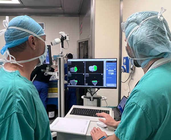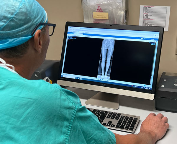 Una tac tridimensionale permette di avere un quadro generale della struttura ossea del paziente e iniziare a pianificare l’intervento. La tac rappresenta infatti la base su cui programmare il robot, che grazie a questa restituzione 3d fornisce valutazioni oggettive al chirurgo, consentendo la visualizzazione del risultato finale del ginocchio del paziente e programmazione dettagliata degli step intraoperatori.